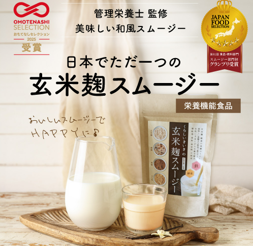 玄米麹スムージーは、手軽に栄養補給ができる発酵スムージーとして、忙しい日常をサポートします。